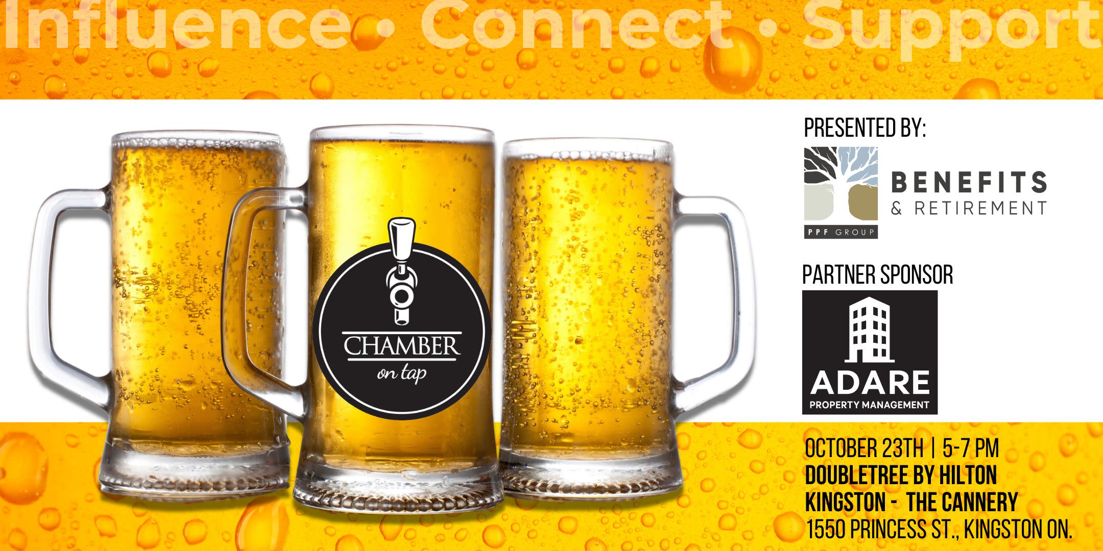 Introducing our premium after-hours business networking event, Chamber on Tap! Join us Thursday, October 23 from 5:00pm to 7:00pm at DoubleTree by Hilton Kingston - The Cannery (1550 Princess Street, Kingston ON) for a night of networking with like-minded professionals.