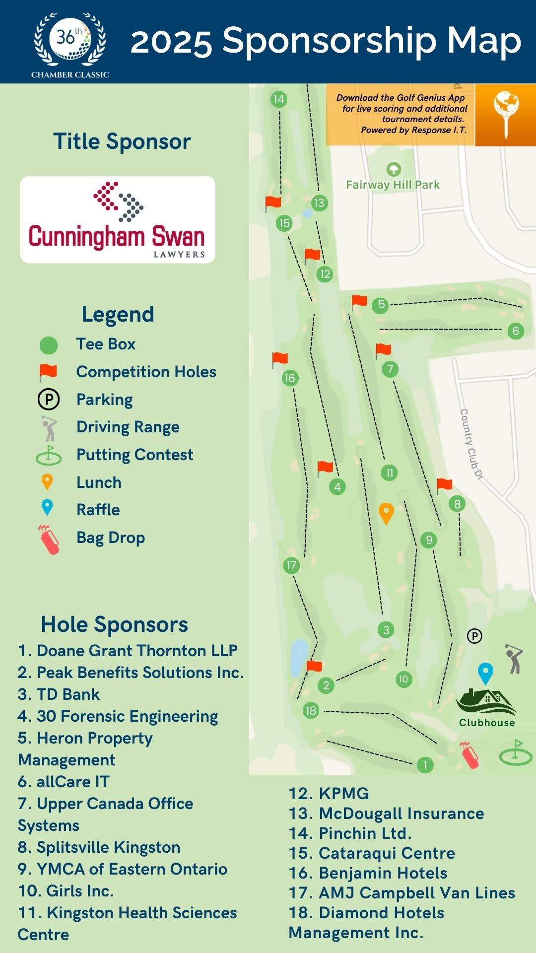 Additional Notes: Be sure to log-in to your member profile to receive member-discounted pricing. Cancellations must be received two weeks prior to the scheduled event for a full refund. Golfers are encouraged to bring their own golf clubs. Lastly, please reach out to events@kingstonchamber.ca if you have any allergy/dietary restrictions.