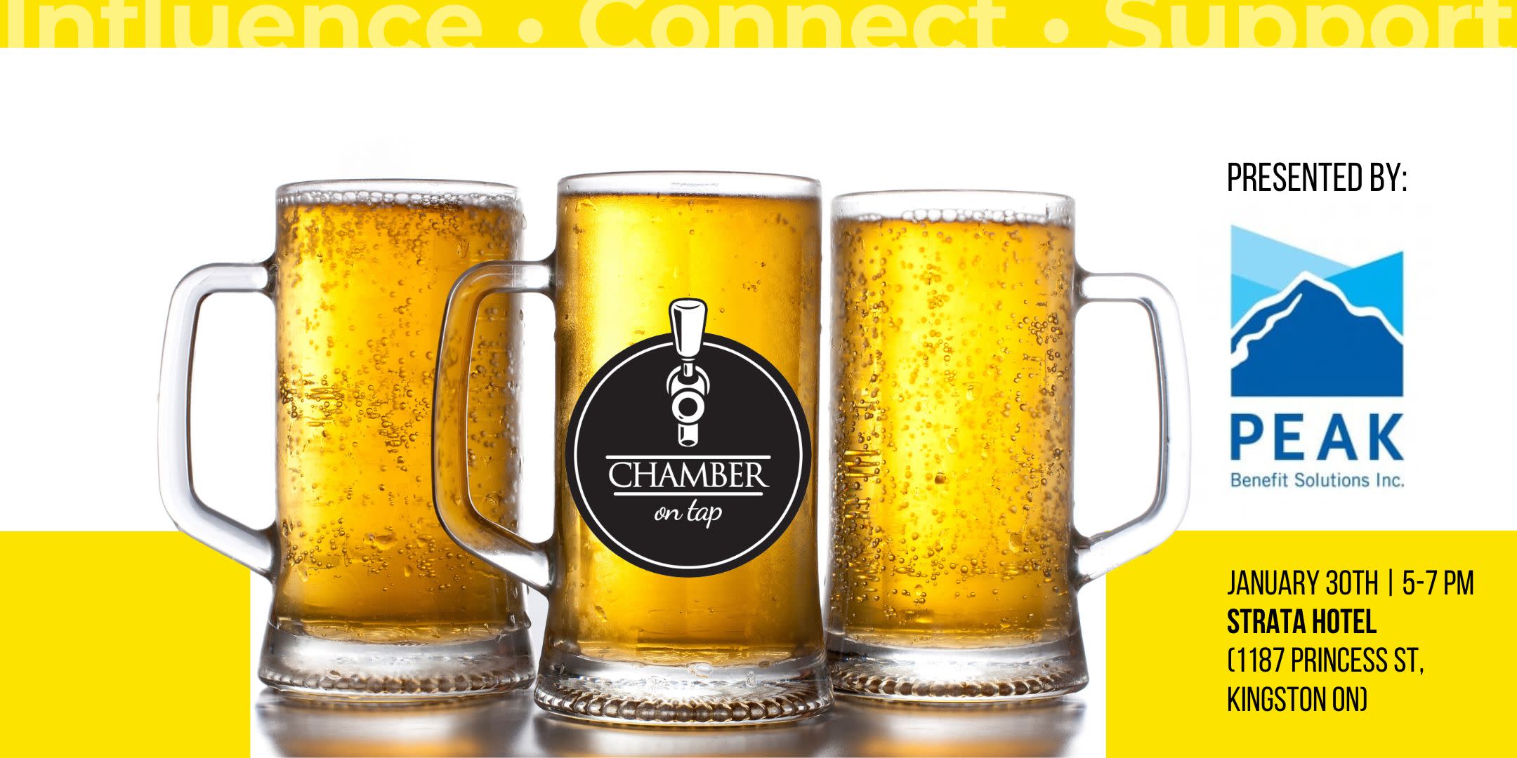Introducing our premium after-hours business networking event, Chamber on Tap! Join us Thursday, January 30th from 5:00pm to 7:00pm at Strata Hotel (1187 Princess St. Kingston ON) for a night of networking with like-minded professionals.