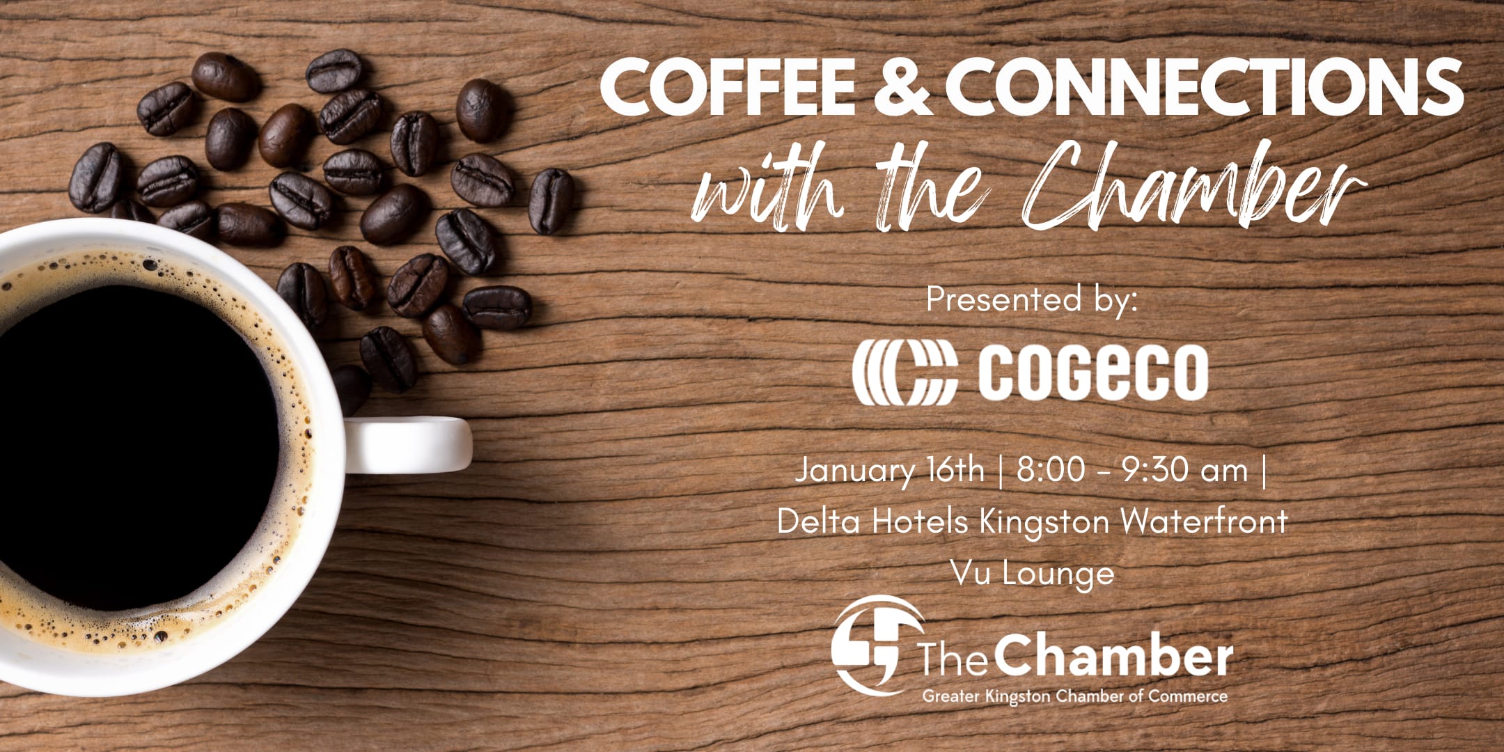 Chamber members are invited to attend the newly launched Coffee & Connections with the Chamber taking place Tuesday, January 16th from 8:00 to 9:30 am at Delta Hotels Kingston Waterfront, Vu Lounge!